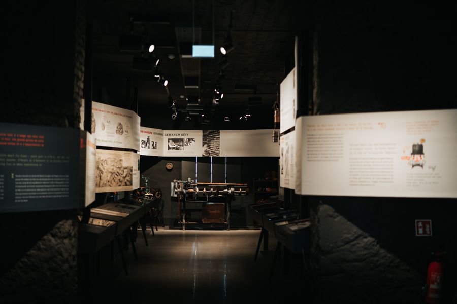Die Ausstellung präsentiert die Herstellung von Berglampen, bekannt als "Karbidsluuchten", luxemburgischen Wagen ("Buggies") und natürlich Schuhe. Das Museum befindet sich direkt neben dem Kulturzentrum "Schungfabrik" und widmet sich der bedeutenden Rolle von Bergleuten und der Arbeiterbewegung, die die Kultur der Region geprägt haben.