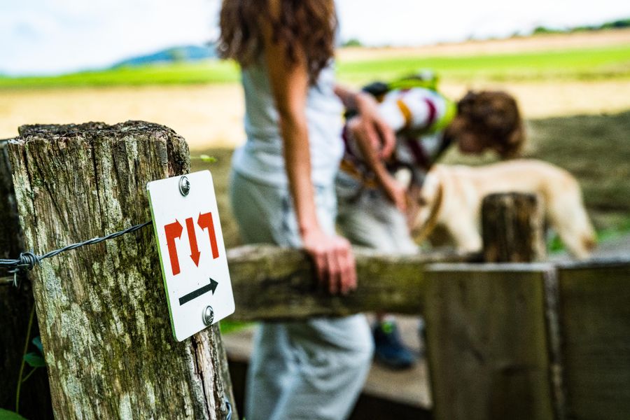 En pleine nature, elle se trouve sur des arbres et des pieux. Aux points de jonction importants, vous trouverez également des panneaux avec des flèches indiquant la direction et des informations sur la distance à certains points, ainsi que des pictogrammes pour indiquer les destinations possibles.