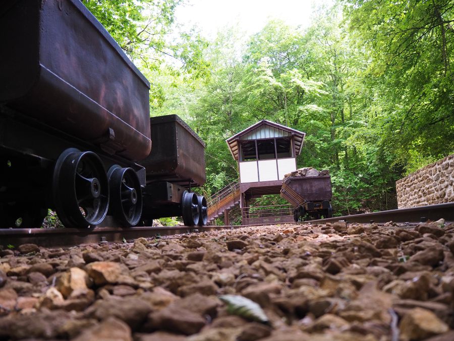 The south of Luxembourg and the landscape around Tetingen were shaped for decades by iron ore mining. Since there were no other buyers for the ore except the ironworks in Rümelingen in the Kay Valley itself, it had to be transported out of the valley. The Minettswee shows at various stations the path of the iron ore from the higher mining areas down to the railway lines leading out of the valley. Special highlights along the way are the restored brake house at the Laangenaker brake hill and the depiction of the situation at the Laangenaker quay, where the ore was tipped from the ore delivery wagons (buggis) onto the railway cars. Enjoy your circular route through the spectacular landscape of the former mining areas and delight in the views from the heights into the Kay Valley and of impressive red rock walls. We wish you much enjoyment.