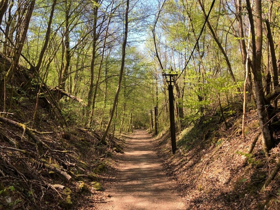 Along the route, you find many remains of the turbulent past in the mining area: sections of the former "Bremswee" of the "Buggies" – those mine carts used to transport the precious ore from the mining area. In the Prënzebierg - Giele Botter area, you can admire terraces created by human hands, where mining has deeply carved into the rock. You might even discover mine entrances now inhabited by bats. Additionally, the path is rich in old witnesses of industrial history: power poles, remnants of a railway network, and more. From the village of Lasauvage towards Differdange, the route also follows the "Crosnière" stream.